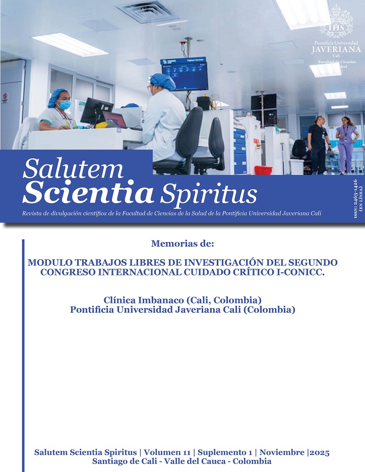 Vol. 11 Núm. 2 (2025)Memorias de MODULO TRABAJOS LIBRES DE INVESTIGACIÓN DEL SEGUNDO CONGRESO INTERNACIONAL CUIDADO CRÍTICO I-CONICC. Clínica Imbanaco (Cali, Colombia) y Pontificia Universidad Javeriana Cali (Colombia)